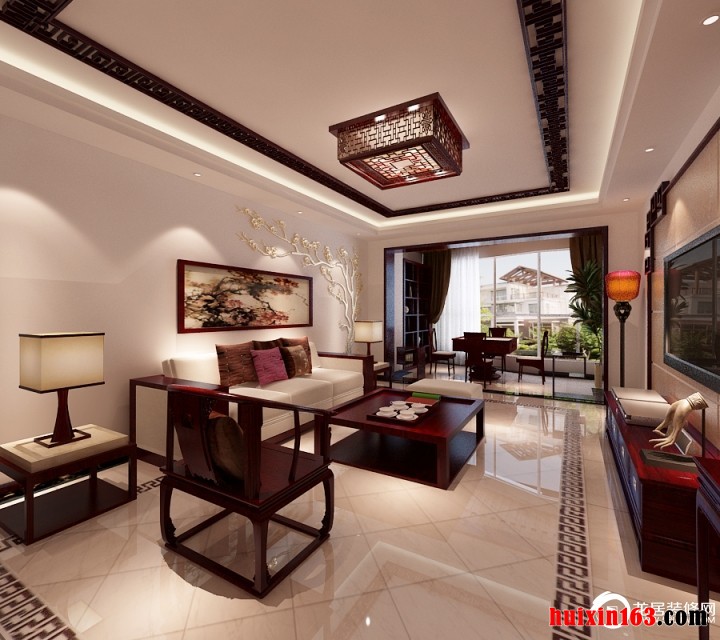 ![]() 福莱花园-120平米-新中式风格装修效果图--客厅